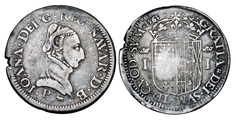 Lot 813. FRANCE, Navarre. Jeanne dAlbret, 1562-172 AD. AR Teston.