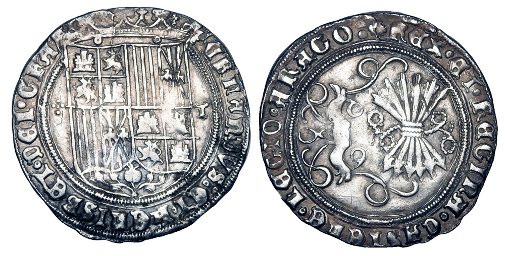 Lot 825. SPAIN. Ferdinand and Isabella, 1469-1504 AD. AR Real.