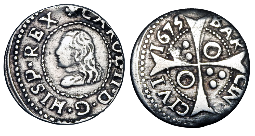 Lot 827. SPAIN. Carlos II, 1665-1700 AD. AR Croat. Rare.