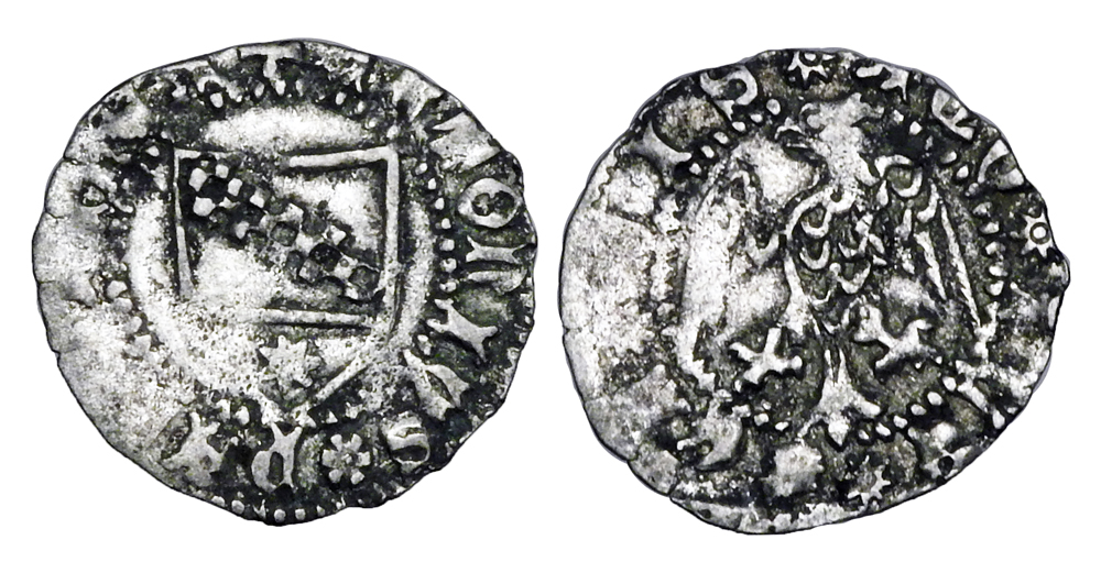 ITALY, Aquileia. Antonio II Panciera, 1402-1411 AD. AR Denaro (0.61 gm). Shield of arms / Eagle. Bernardi.67a. Toned VF+.