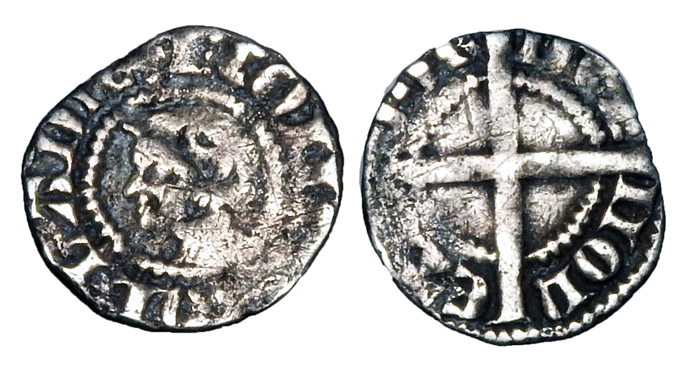 LOW COUNTRIES, Holland. Jan I, 1296-1299 AD. AR Copken (0.51 gm), Dordrecht. Profile bust / Long cross. Rob.8453. Toned Fine+.