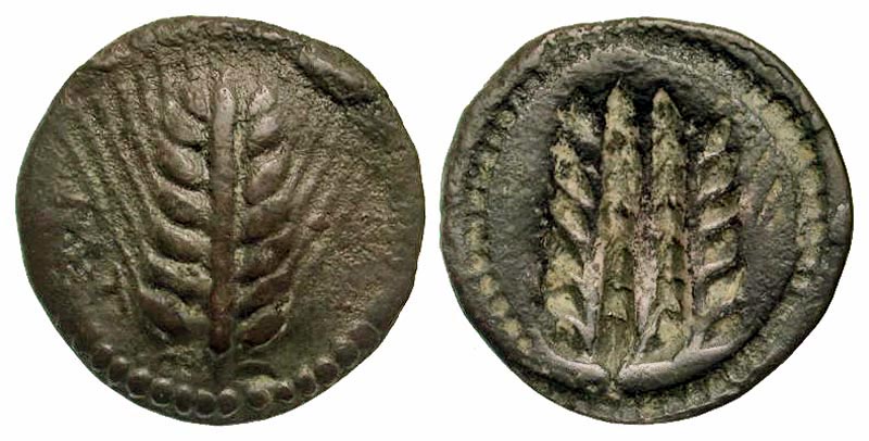 LUCANIA, Metapontion. 509-465 BC. AR Third Stater (2.60 gm). Barley-ear / incuse of barley-ear. Noe.52. Toned VF.